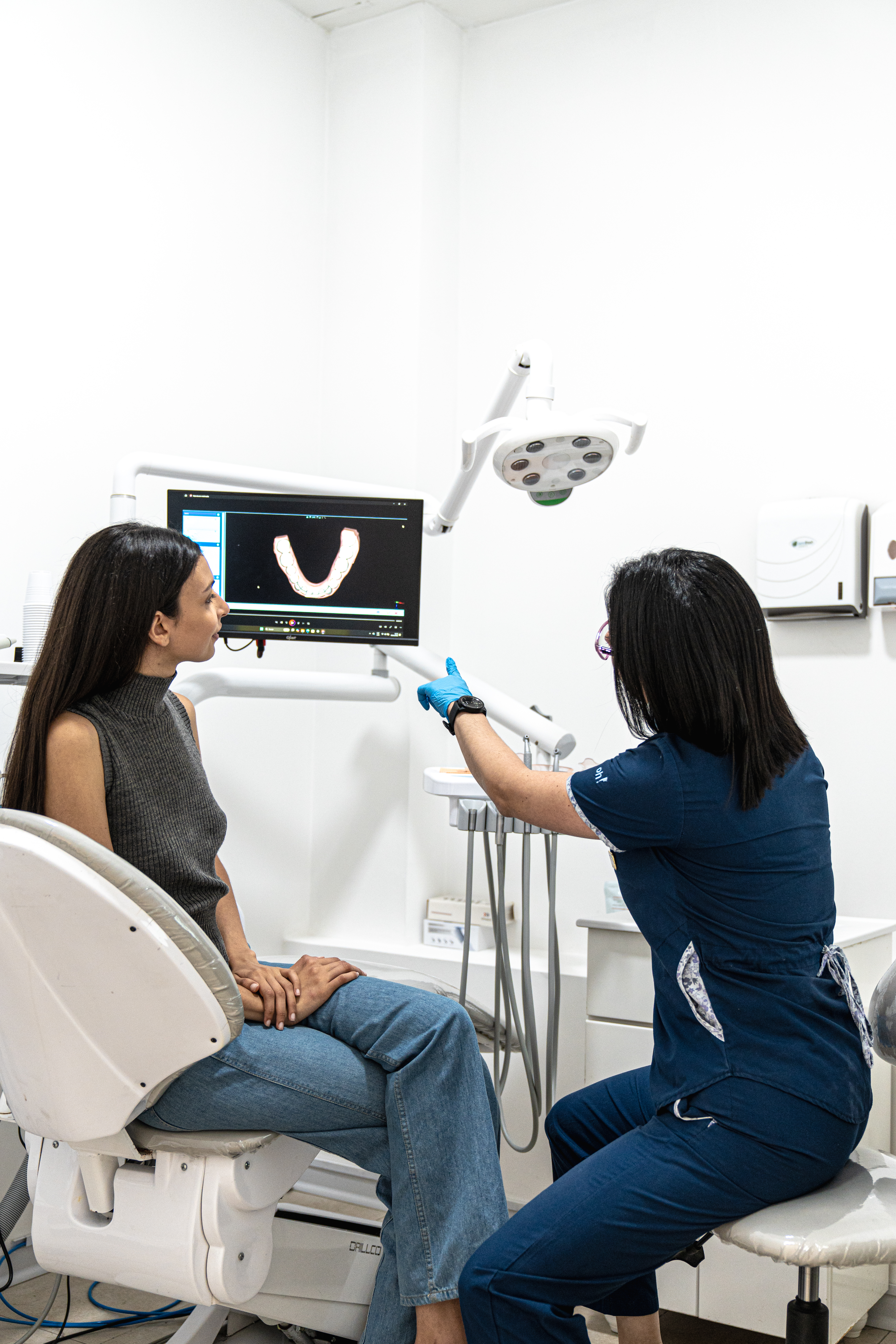Hacemos una evaluación inicial donde tomamos fotos, una radiografía y escaneamos tus dientes.